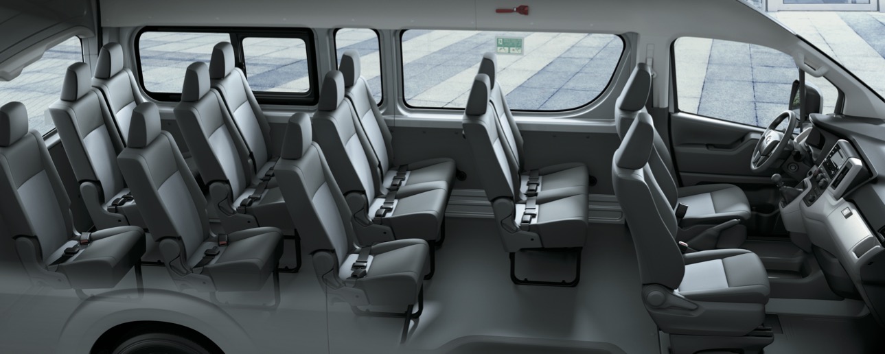 HIACE COMMUTER—a commercial vehicle for use by true professionals—is now further evolved and ready to hit the road. Its unwavering quality to date remains unchanged, while its styling has been updated. In addition, HIACE COMMUTER guarantees the practicality and comfort levels of the minivan class. Meeting the demands of a new era, enabling transportation in comfort and security.